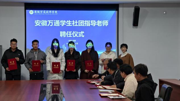 为深入贯彻落实立德树人根本任务,进一步促进学生社团规范管理、提质增效,充分发挥学生社团在校园文化建设和学生综合素质培养中的重要作用,11月21日下午,安徽万通技师学院召开了学校学生社团高质量发展推进会暨2026年度学生社团指导老师聘任仪式。学校分管学生管理工作的副院长张凯星出席会议并讲话。学生处、教务处相关负责人,各学生社团新任指导老师参加了会议。会议由院团委主持。
