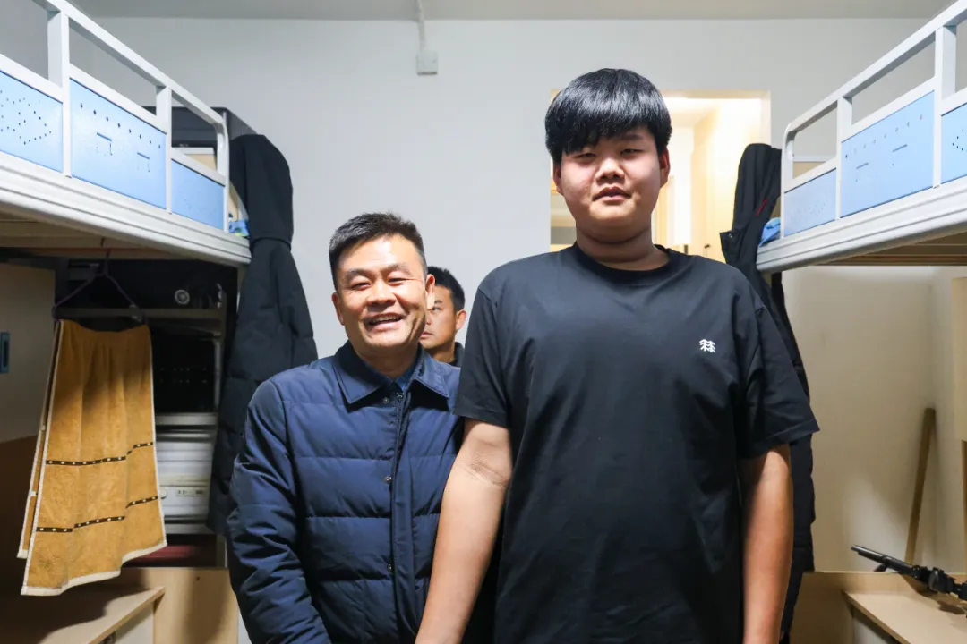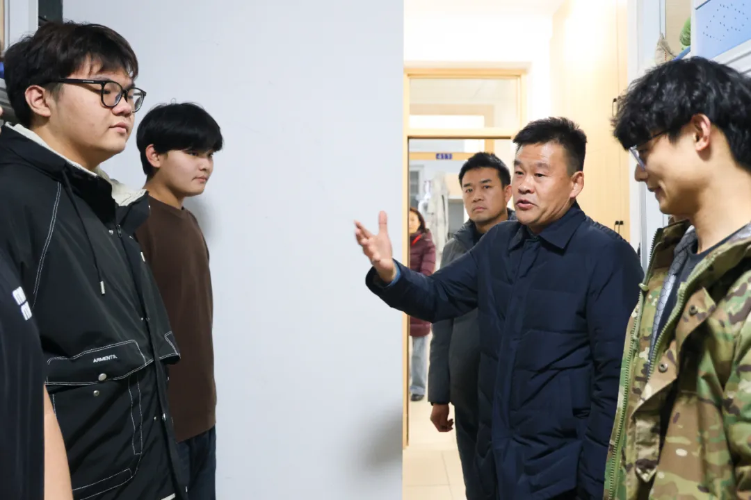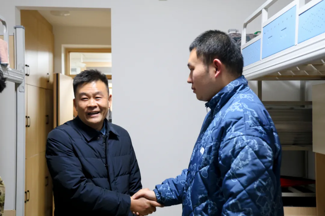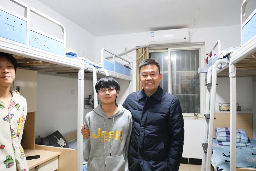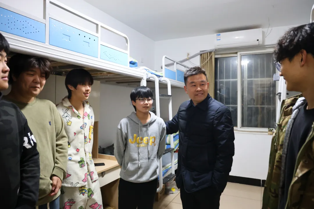 走访过程中,校领导一行不仅关注宿舍的供暖、卫生等基本条件,更细致观察着可能存在的各种问题。从电源线路安全、床铺舒适度到储物空间安排,无一不在他们的考察范围之内。