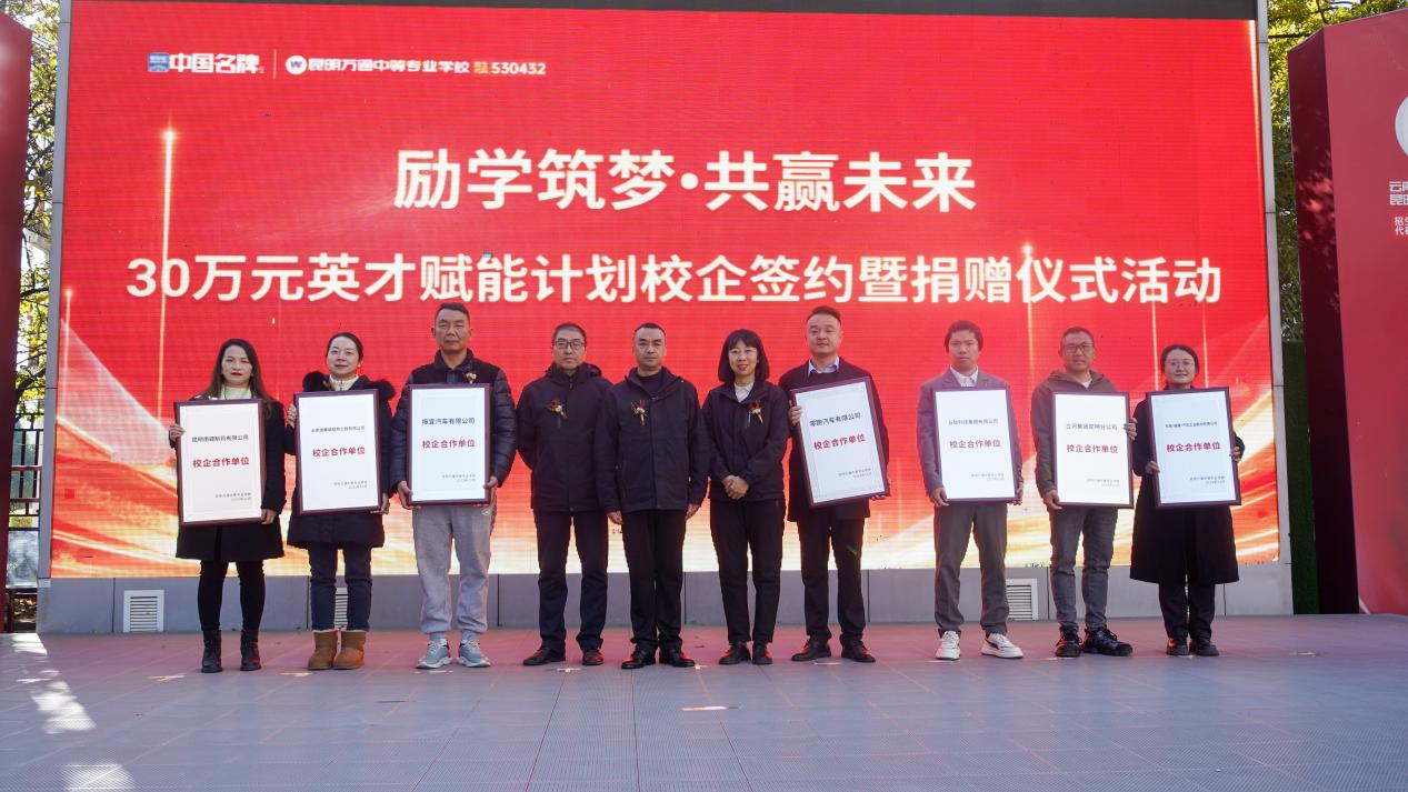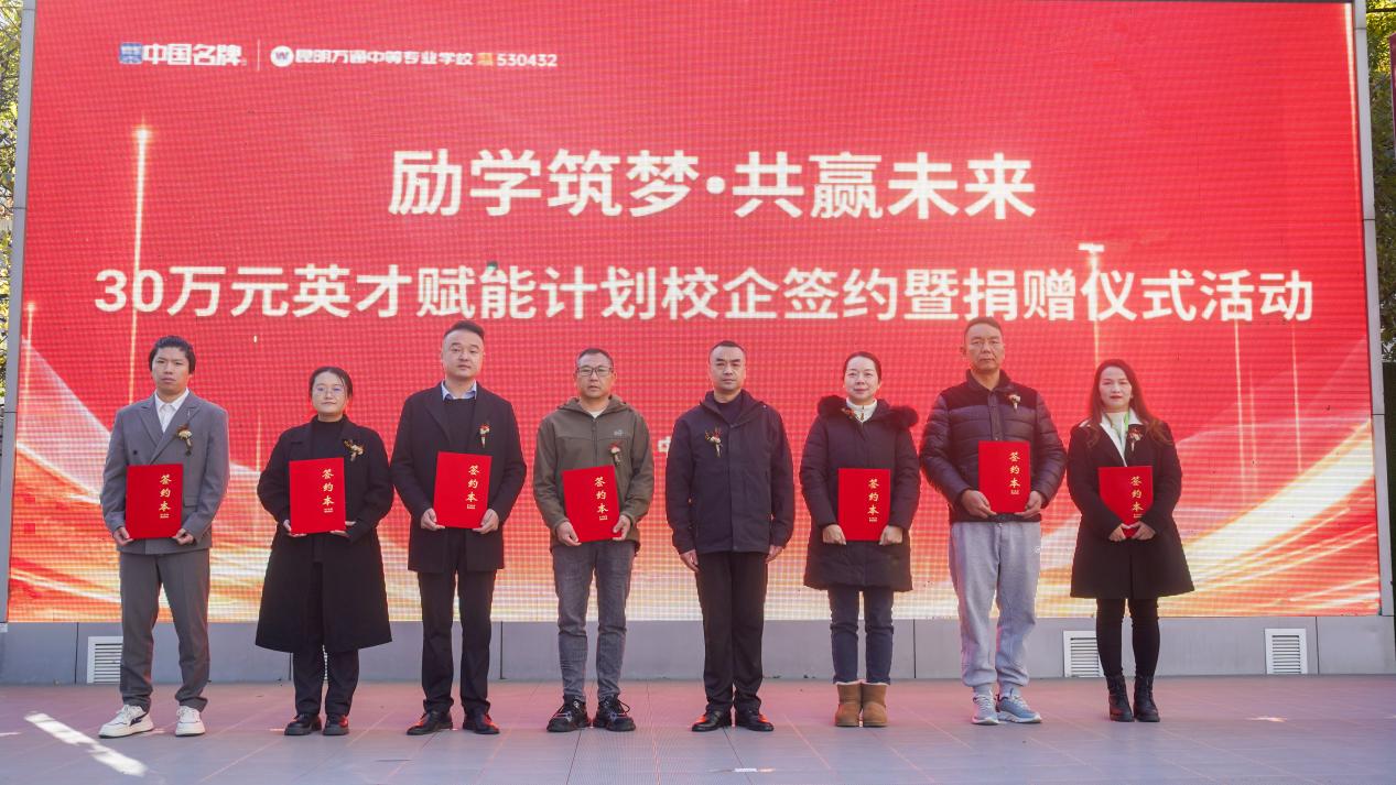 校企携手筑基石,英才赋能启新程!今日,昆明万通中专学校“励学筑梦•共赢未来 30万元英才赋能计划校企签约暨捐赠仪式”隆重举行,七家行业标杆企业携爱心而来,与学校共绘人才培养新蓝图,现场气氛热烈而庄重。此次活动意义深远,既彰显了昆明万通的专业特色与硬核实力,更为学生的就业升学筑牢保障基石,同时全面提升了学校的品牌知名度与行业影响力。