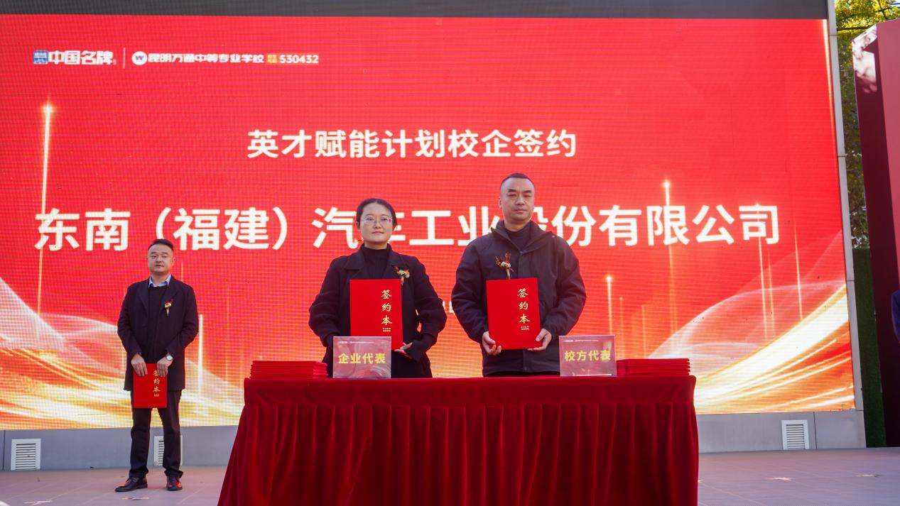 新能源2503班的思毅同学作为学生代表上台发言,其表示:“来到万通学习的这些日子,心里既盼着能学好过硬技能,也盼着未来能有一个好平台,把学到的本事用在实处。而今天,当看到零跑汽车、东南汽车、昆明南疆制药等7家企业和学校签约,还为我们带来30万元英才赋能基金时,我心里特别暖——这不仅是企业对学校的信任,更是对我们万通学子的认可和期待。”