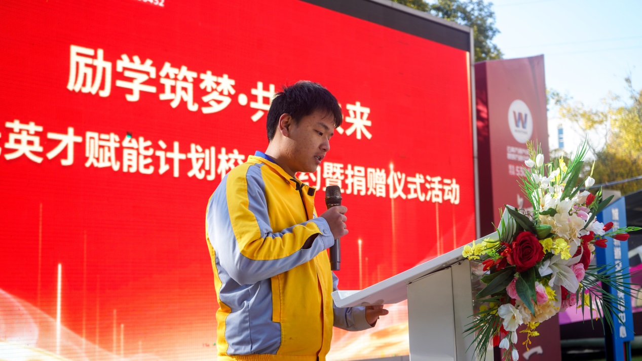 思毅同学表态:“我们将把这份感恩转化为学习的热情,在新能源、焊接、PLC等专业课堂上深耕理论,在实训车间苦练技能,以过硬的本领回应企业与学校的期待,未来无论是进入合作企业就业,还是投身行业发展,都将以实际行动证明‘技能学子能成才、能担当’!”