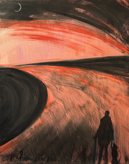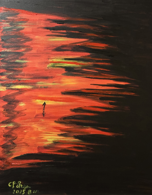陈持平《独坐对残阳》 布面丙烯 91×72.7cm 2025年